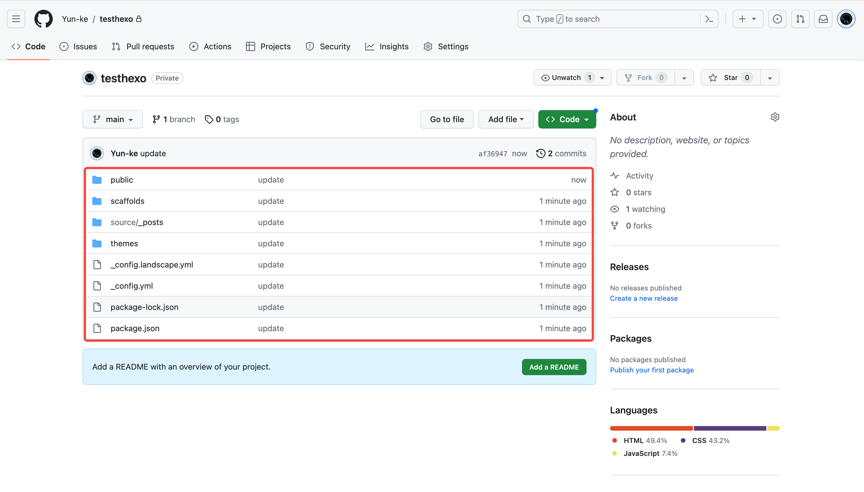 然后将本地跟hexo相关的文件放到此仓库,然后上传到GitHub仓库: