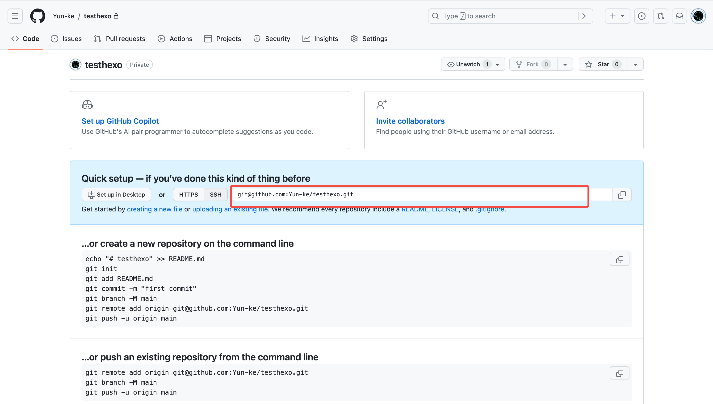 1 | git clone git@github.com:Yun-ke/testhexo.git |