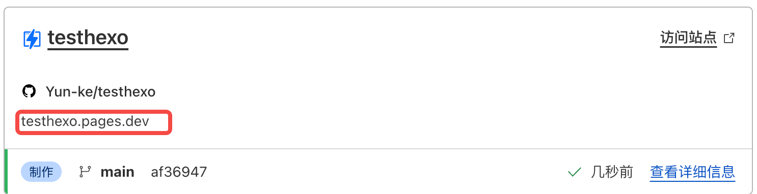 浏览器输入域名https://testhexo.pages.dev网页显示如下所示: